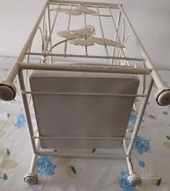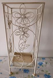 Portaombrelli In Ferro Battuto Con Decorazione. Leggermente Da Restaurare Bianco in qualche punto manca la vernice come da foto mostrato c'è il fondo in plastica leggermente piegato come da foto mostrato