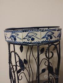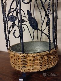 Altezza 50cm diametro 25cm struttura metallo decorazione ceramica e vimini.
