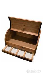 PANETTA PORTAPANE BOMBATO IN LEGNO con cassetto Mai usato con cassetto porta oggetti o posate