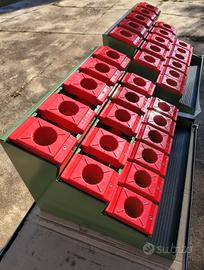 2 Supporti portautensili meccanici con 16 boccole l'uno, per gambo diametro 50 mm. Dimensioni: cm 57 x 45 x 35 h. Euro per entrambi 200 (o euro 100 Cad). Non trasporto. (Guardate anche gli altri miei annunci. Grazie)