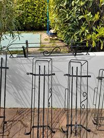in ferro battuto, condizioni ottime, perché tenuti in garage e non fuori, all'uno 23 euro, se presi tutti e 5 prezzo trattabile, 4 sono identici (lunghezza 100cm, larghezza 16 cm, altezza 13 cm) uno un poco più piccolo ( 85 cm lunghezza, larghezza 15 cm, altezza 11 cm)tutto come da foto.