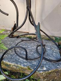 Vintage Portavasi in ferro lavorato con rose rosse e foglie verdi con 4spazo fioriere. Dettagli stato e misure in foto. Ritiro a mano in loco o spedizione gestita a carico dell'acquirente