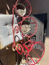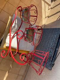 Vendo per Trasferimento, portavasi da giardino in metallo lavorato artigianalmente, con tre posti per vasi creato e saldato in ferro a sezione quadrata, diametro per ogni vaso è di cui portavasi 19 cm;.