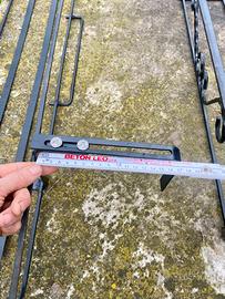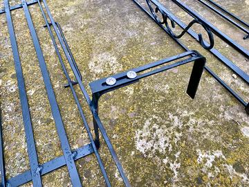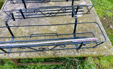 Portavasi in ferro verniciati neri lunghi cm 106 e larghi cm 22. I ganci sono regolabili per adattarsi a diverse misure di muretto. Disponibilità 3 pz a € 20 cadauno