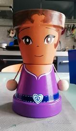 Dipinti a mano su vaso di terracotta con "mani" in sfere di legno levigato. A seconda del diametro del vaso varia il prezzo. La maggior parte sono diametro 13 cm , altezza circa 24 cm euro 25 esclusa spedizione