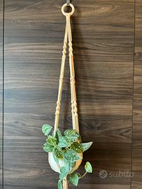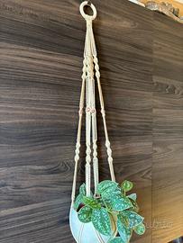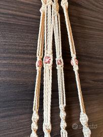 Portavaso appeso in macramè intrecciato a mano. - filo made in italy beige - 4 perline in legno - anello in legno - lunghezza 95cm guarda il mio profilo per altri modelli contattami in privato :)