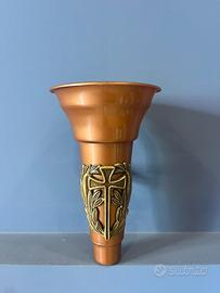 Braccetto portavaso in bronzo a parete ( incluse viti per montaggio ) Interno in plastica conico color rame