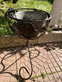 portavaso in ferro battuto, più piccolo paiolo di rame contenente una graziosa piantina di Aptenia cordifolia in fiore. Il paiolo con la pianta si possono appendere e il portavaso utilizzare per un'altra pianta. Il portavaso è in ferro battuto con decori di fiori e foglie, molto bello. Tris portavaso, paiolo e pianta 50 euro. Solo portavaso 40 euro. Non potendo spedire consegno di persona presso la mia abitazione o nelle vicinanze. Milano zona Affori FN