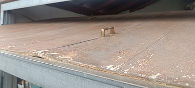Portone basculante, struttura in acciaio zincato con copertura in pannello di compensato multistrato.
