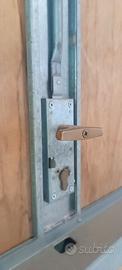 Telaio in buono stato, il portone viene aperto e chiuso un paio di volte alla settimana, pannello in compensato con difetti come da foto.