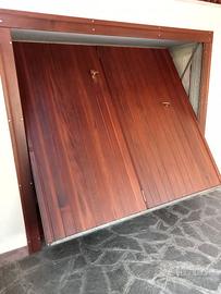 Vendo basculante per garage, munito di porta con serratura, struttura in acciaio e rivestimento esterno in doghe di legno. Dimensioni del foro 2200 mm base x 2050 mm altezza. Dimensioni del basculante 2000 mm base x 1940 mm altezza.