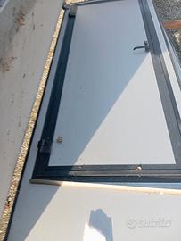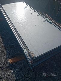 Bellissimo portone garage misure indicative senza telaio 2,86 altezza per 3,98 larghezza completa di porticina pedonale, telaio di tamponamento, supporti per scorrimento laterale.Si tratta di una porta libro coibentata composta di 4 ante,abbinate a coppie due a sinistra e due a destra.Solo contatto telefonico 3383184861.