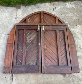 Portone a due ante in vero legno massello in ottime condizioni. Necessaria solo una verniciatura del lato esterno.