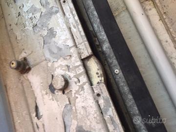 Vendo portone scorrevole in ferro zincato e verniciato - parte inferiore chiusa con pannellature - 3 parti superiori ri con vetri medio spessore.