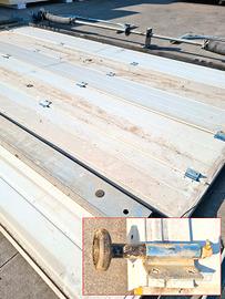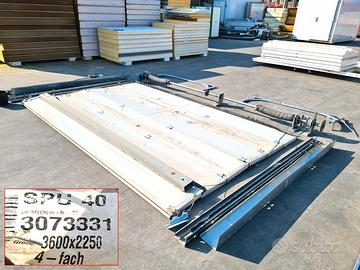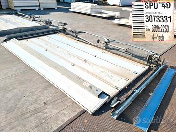portoni sezionali per cella frigorifera usati, si tratta di 2 portoni orizzontali costituiti da pannelli coibentati uniti tra loro con cerniere che si aprono scorrendo verticalmente lungo le guide laterali, ripiegandosi sotto il soffitto del garage adatti anche per: magazzini, autolavaggi, industrie alimentari, etc.