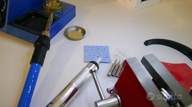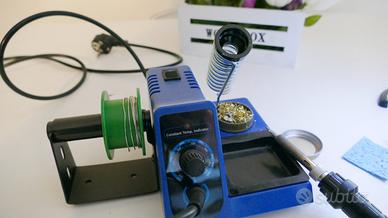 Saldatura 60W Professionale Saldatore Elettrico con Temperatura Regalabile 200°C-480°C Termostatica Intelligente con 5 Punte Sostituibili e Filo di saldatura, accessori morsa per riporre cavi, e lampada con lente ingrandimento.