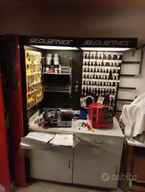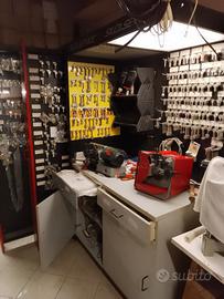 La postazione per duplicazione di chiavi è composta da: - 1 tavolo da lavoro con ante e cassetti; - 2 sportelli/ante scorrevoli Profondità 67 cm per esposizione chiavi; - 2 macchini duplicatrici per chiavi standard, a doppia mappa e a pompa; - ricco assortimento di chiavi da duplicare.
