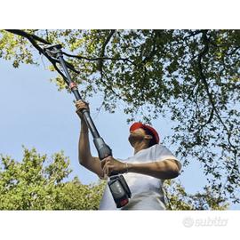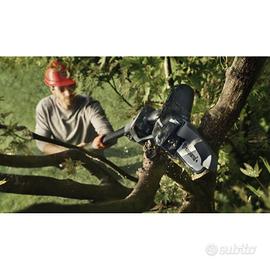 Potatore ad asta a batteria Husqvarna Aspire™ P5-P4A, utilizzabile sia con asta che senza. È possibile collegare e regolare facilmente l'asta fino a 1,7 m, per raggiungere più facilmente i rami più alti. Progettato per garantire la qualità Husqvarna, può tagliare facilmente rami fino a 75 mm di larghezza. Dotato di un'impugnatura morbida con un sistema di sostituzione facile e senza attrezzi della catena e della barra. Maggiore sicurezza grazie allo spegnimento automatico se lasciato inutilizzato per più di 180 s. Facile rimessaggio grazie al gancio in dotazione, olio catene Bio incluso nella confezione (50ml). Questa macchina fa parte del sistema di batterie 18V POWER FOR ALL. I prodotti a batteria Husqvarna Aspire™ sono stati sviluppati tenendo conto dello spazio limitato. Per questo motivo, ogni prodotto viene fornito con un gancio di stoccaggio su misura che può essere montato direttamente a parete o utilizzato con il sistema di guide di stoccaggio Husqvarna Aspire™, su cui poter riporre anche tutti gli altri attrezzi per la cura del tuo giardino della gamma Aspire™. Questo prodotto fa parte del sistema a batterie "POWER FOR ALL ALLIANCE" ed è compatibile con numerose altre batterie e caricabatterie dei marchi partecipanti. Ciò significa che è sufficiente acquistare una sola batteria e sarà compatibile per tutti i prodotti per la cura del tuo giardino.