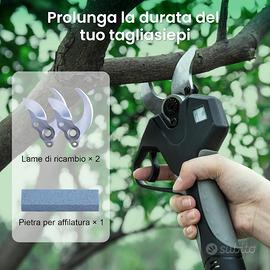 Kit completo con funzioni di sicurezza avanzate: Il kit include 2 batterie, 2 set di lame di ricambio, pietra per affilare, bottiglia d'olio, attrezzi, guanti, occhiali protettivi e una custodia. Il blocco di sicurezza integrato evita attivazioni accidentali, rendendo questi potatori a batteria sicuri per ogni livello di esperienza.