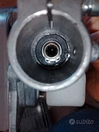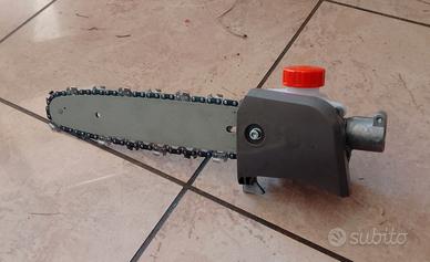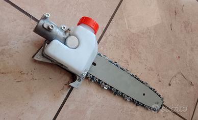 Potatore per decespugliatore , barra catena 12" , attacco per asta 26mm. ed alberino a 7 denti , ho anche un riduttore per asta 24. Dispone di serbatoio per olio lubrificante catena e ingrassatore x la coppia conica.. Mai usato , vendo per inutilizzo . Non l'ho mai usato , la catena non ha maibtagliato