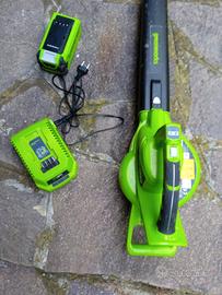 ******* CONSEGNA A MANO ******* Soffiatore con batteria e caricabatterie 40 Volt GREENWORKS POTENTISSIMO IN OTTIME CONDIZIONI utensili per giardino giardinaggio fai da te strumenti batteria batterie caricabatterie volt watt ampere ah potenza forza soffiatore decespugliatore motosega tosaerba rasaerba taglia erba taglia fusti tagliasiepi taglia siepe siepi motosega durata robusta robusto resistente robustezza falciatrice verde naturale natura green leggero leggerezza maneggevole maneggevolezza foglia foglie rami tronchi compostaggio.alko alpina awelco black+Decker Bosch ctek echo, de Walt, efco ego einhell Gardena ikra castelgarden Makita toro Milwaukee worx Cramer powerworks greenworks zanon Honda Kawasaki stiga sthil Husqvarna extol excel mtd ruris.