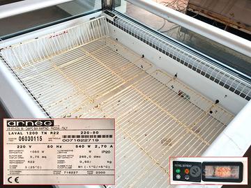 pozzetto isola carrellato per affettati usato, si tratta di un pozzetto refrigerato con ruote di marca Arneg mod. Laval 1200 TN R22 del 2000 funzionante a 220v per l'esposizione di prodotti come: affettati, formaggi, cotolette, etc. nei supermercati.