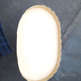 Pratico tavolino richiudibile in robusto ferro stile antico Anni 50/60. Ripiano del tavolo in stile vassoio ovale con bordo decorato.