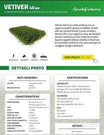 Vendo rotolo di prato sintetico 3.2 x 2 mt, altezza erba 40 mm, effetto molto bello da vedere.