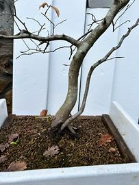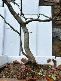 Faggio yamadori, in cassetta da un anno. Ha ricevuto solo riduzioni di cacciate ecccessivamente lunghe. Pianta sana e vigorosa.
