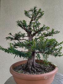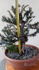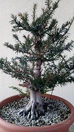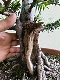 Pre bonsai di tasso, taxus baccata, da diversi anni in coltivazione, potato e selezionato i rami principali, filato 3 volte, fatto una prima lavorazione grossolana del legno secco, ottimo apparato radicale, buona base per ottenere un eretto informale, diametro del tronco di circa 7 cm per un'altezza totale, vaso escluso, di circa 40 centimetri. Pianta pronta per qualsiasi lavorazione, in salute e vigorosa. Le penultime 2 foto sono aggiornate a dopo la 3^ filatura (e "sfilatura") e potatura estiva, relativa luglio '25.