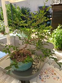 Prebonsai di ligustro in vaso, pianta in salute con bel tronco.