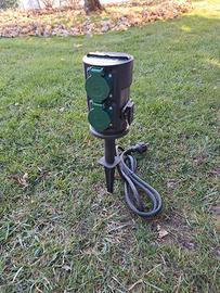 Multipresa da giardino con picchetto. Dotata di 4 prese schuko con livello protezione IP44.