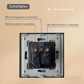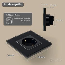 Presa Schuko, presa standard UE 1 vano, presa da incasso in vetro, prese con piastra in cristallo, prese a muro, nero, 86 x 86 mm, conf. da 6 Nuovo prezzo Amazon 45€ vendo a 25€