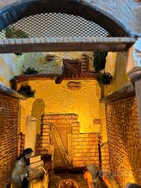 Presepe Artigianale realizzato completamente a mano e curato in ogni minimo dettaglio come si può vedere in foto. Misure: 35x32x34. Il presepe viene venduto senza pastori.