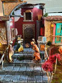 Presepe Artigianale realizzato completamente a mano e curato in ogni minimo dettaglio come si può vedere in foto. Misure: 40x50x44. Il presepe viene venduto senza pastori.