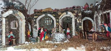 presepe artigianale completo di personaggi e luci led