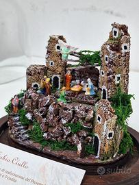 Vendo presepe in campana di vetro ovale, misura molto particolare (H15xP8xL16). Realizzato con pastori chiamati "Moschelle" per la loro misura, infatti hanno una grandezza di solo 1,5cm. Realizzato e dipinto interamente a mano.