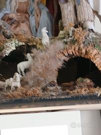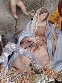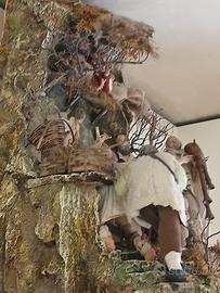 FAVOLOSO Presepe nNAPOLapoletano X VERI Amatori Rappresenta la natività Pastori con occhi di vetro alti 30 cm con abiti di seta di San leucio + Luce atmosferica FANTASTICA.