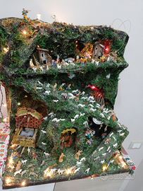 Presepe in carta pesta completo di pastori fontana e illiminazioni 49x32x54h