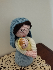 Vendo rappresentazione della natività lavorata interamente a mano all'uncinetto in cotone con la tecnica amigurumi, include Maria (10 cm), Giuseppe (12 cm), il bambinello e l'angelo (9cm)