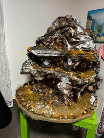 Presepe fatto a mano (legno e carta ) completo di luci.