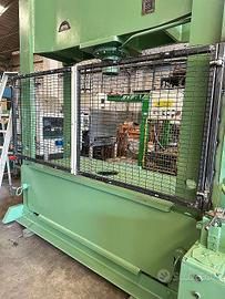 Pressa Bignozzi da 160 ton e 500 bar con piano idraulico a 3 posizioni di lavoro. Piano di lavoro 2100 x 960 mm con foro centrale su piano di 300 mm. Pressa completamente a norma con le sue protezioni di sicurezza. Ingombro della pressa 3400x1400. Peso 55 quintali.