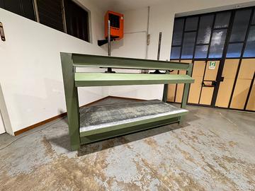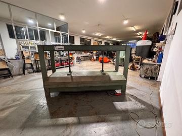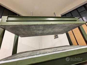 MACCHION ATTREZZATURE S.a.s. Centro affilatura - Commercio macchine per legno Video e foto su: INSTAGRAM: Macchion_Attrezzature FACEBOOK: Macchion Attrezzature WEB: macchion.it PAGAMENTI RATEIZZATI – NOLEGGIO. Codice articolo: UC 02 – usato controllato. Pressa per porte e falegnameria in genere. Modello Italpresse V2/2500. Lunghezza dei piani 2.500 mm. Larghezza dei piani 1.200 mm Apertura massima 700 mm. Movimentazione meccanica con motore volt 380 trifase. Volendo potete sostituire il motore con uno equivalente volt 220 monofase poiché serve ad aprire e chiudere il piano. La stretta finale viene data dall’operatore tramite il volantino collegato meccanicamente ai 2 pistoni meccanici. Dimensioni: Lunghezza 284 cm. Larghezza 120 cm. Altezza (telaio) 165 cm. Altezza dei pistoni con piano tutto alto 233 cm. Peso Kg 880. Il prezzo indicato di € 900 è imponibile netto fatturabile a rivenditore o per export.