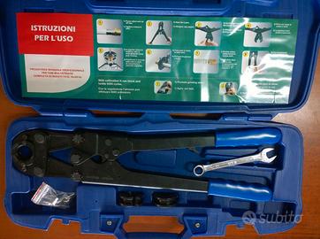 pressatrice manuale per raccordi tubo multistrato completa di matrici d. 16-20-26-32 con profilo th. fornita con valigetta.