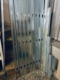 9xmontanti acciaio zincato 47x74x50mm L=2,8m guide 40x75x40mm L=var 1,65m 1,35m e sfridi vari 1xangolare 30x30mm Leggermente tagliati in alcuni punti per far passare gli impianti