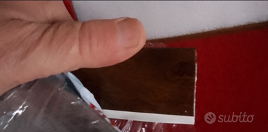Matassa di 8 strisce di coprifilo per serramenti di colore noce. Prezzo al pubblico oltre 120 €uro