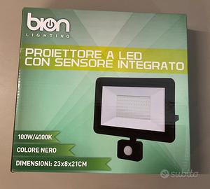 Proiettore a LED 100W / 4000k con sensore di movimento integrato marca BION LIGHTING , colore NERO misure 23 x 8 x 21 cm , IP 44 , 8000 lumen con staffa di fissaggio e con 20 cm di cavo . NUOVO disponibilita’ 4 pezzi