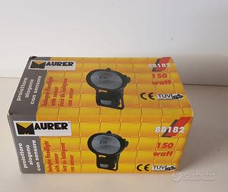 Maurer Proiettore Alogeno IP44 ovale con sensore di movimento, funzionamento automatico, accensione con durata programmata, corpo in alluminio pressofuso, staffa con regolazione dell'inclinazione, 230V lampada alogena max 150W inclusa.
