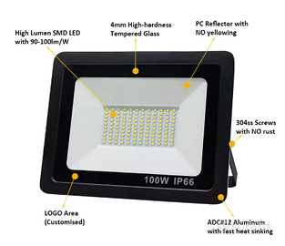 Faro LED proiettore da esterno 100W slim SUNRISE, luce bianca, 120 led, illuminazione potente ed uniforme, ideale per giardini, cortili, garage, parcheggi, terrazze e ambienti esterni. Classe di protezione IP66 waterproof, resistente a pioggia, polvere e agenti atmosferici, perfetto anche per uso professionale e commerciale. Lunga durata e risparmio energetico grazie alla tecnologia LED di ultima generazione, bassa manutenzione e costi ridotti. Installazione semplice su pareti, soffitti o strutture, con staffa regolabile per orientare la luce dove serve. Corpo in alluminio antigraffio e copertura in vetro temperato, design moderno, leggero e robusto, ultrasottile. Angolo luminoso ampio, luce bianca naturale ad alta intensità per sicurezza e comfort visivo. Assistenza post vendita per qualsiasi problema. Acquisto sicuro da impresa italiana con 100% feedback positivi.