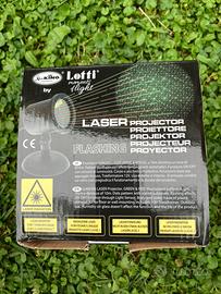 Proiettore laser con lucine rosse e verdi con vari effetti lampeggianti automatici.posto a 10 m illumina un’area di diametro 10 m.completo di trasformatore 12 V. Uso esterno ed interno.è compresa l’accessorio base per l’appoggio e il picchetto in plastica.